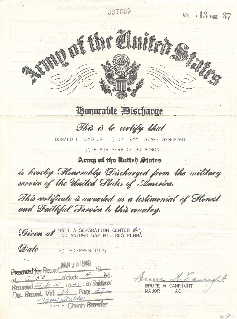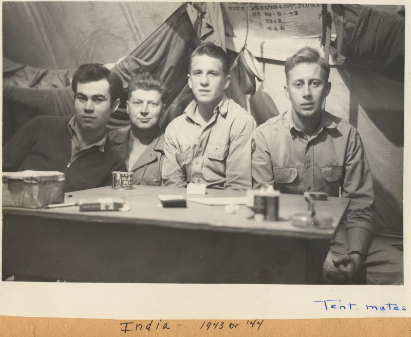 Dad enlisted in the Army Air Corps in the fall of 1941, before the U.S. entered the war in December. From induction at Ft. Hayes, Columbus, he went first to Jefferson Barracks, Missouri, and then to Chanute Field at Rantoul, Illinois. Following training as an aircraft maintenance technician, he spent most of three years in India, during 1943 - 1945, at an Army Air Corps base near Chabua in Assam Province, in the foothills of the Himalayas. He was a non-commissioned officer, working as a service technician in support of aircraft flying "The Hump" from India, to resupply the Chinese who were fighting the Japanese army of occupation. As a result of this experience, Dad had zero interest in tent camping when we were kids, although he did ultimately enjoy camping in a pop-top camper that fit in his 1974 Dodge pickup truck. Dad told a few stories about life in the Army and in India -- mostly observations on the culture and human conditions that he observed there. He was interested in the culture, and learned a smattering of Hindi. He had two scrapbooks, one that he made himself of stateside photos, and one which appears to have been assembled by his mother using photos and information that Dad sent back from India. There are typed captions, which fell loose from the pages over the decades, and it's not always crystal clear which photo is described by a given caption.