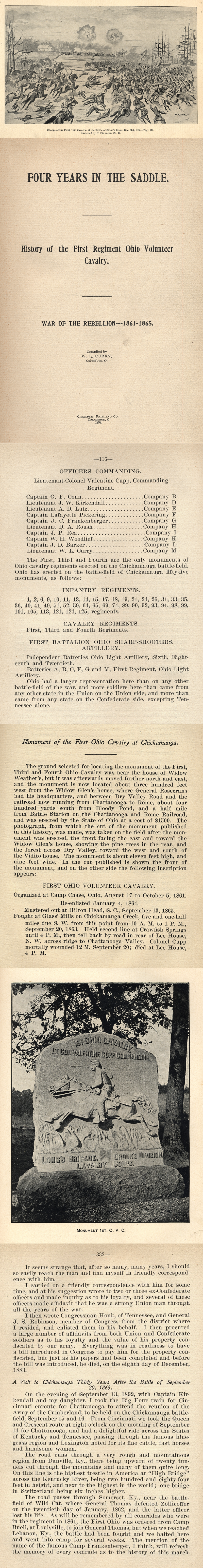 This book belonged to Capt. Kirkendall and came down through the family to my mother -- it has interesting details on Civil War operations involving the 1st Ohio Volunteer Cavalry.