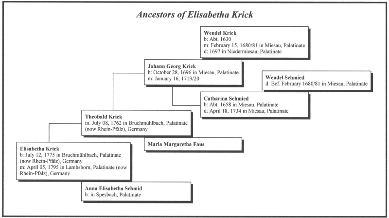 Christian's mother was Elisabetha Krick, daughter of Theobald Krick and Anna Elisabetha Schmid, and a great-granddaughter of Wendel Krick.
