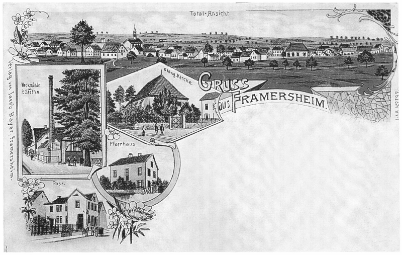 Framersheim, a village just northeast of the town of Alzey, in the Rhineland, was the home of the Wendel family. The wagon-maker Philip Wendel, born there about 1680, brought his three sons, Valentine, Augustine, and Christophel to the Port of Philadelphia on August 17, 1732, and after a temporary stay in Pennsylvania, they came down the "Wagon Road" into northern Virginia, seeking land for homesteading. He apparently learned about available land for sale by German-speaker Jost Hite at what is now Toms Brook, in Shenandoah County. The area was called the North Mountain tract, part of Lord Fairfax's vast land grant from the British crown. Philip took what ended up as three plots, one for each son, and paid for them, in part, with wagon wheels that he built for Hite. This arrangement is documented in a 1790 Virginia Chancery Court case entitled "Christopher Windle v. Hite Descendants" (original case file is at the Filson Historical Society, Louisville, KY). A transcript of the case is under Christophel Wendel's entry on this website.