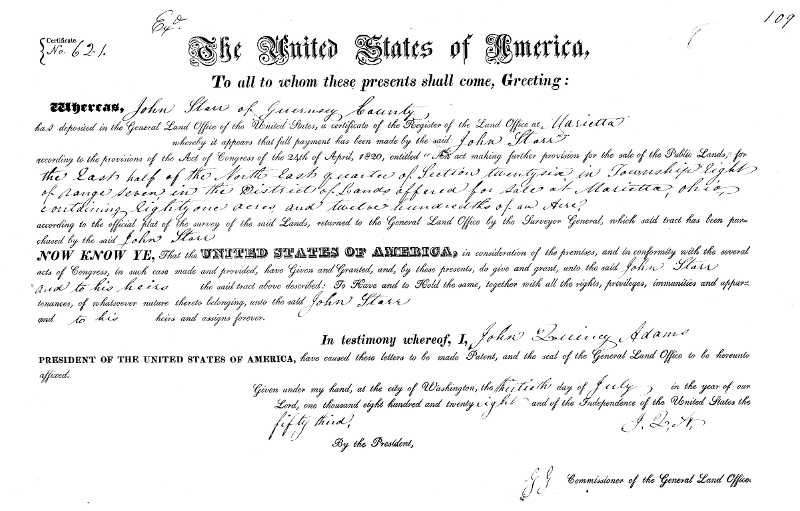 Ohio -- part of "The West" after the American Revolution -- my home state. Before it was a state, it was part of the Northwest Territory -- an inviting land of hardwood forests and freshwater rivers and lakes. Here came Lucas Sullivant in 1797 from Mecklenburg County, Virginia, surveying up the Scioto River while evading hostile Indians, later to return with his new wife Sarah Starling and found Franklinton, now Columbus, in the Virginia Military District. Here came Germanna Colony descendant Philip Wendell and wife Barbara (Swartz) from Toms Brook, Shenandoah County, Virginia, among the first ten buyers of land in the newly opened St. Clairsville district, in the Seven Ranges in 1801, settling in Beaver Township of Guernsey (now Noble) County. Here came Enoch Fuller, Mayflower Pilgrim descendant, from Saratoga, New York with members of the Connecticut Land Company, to Austinburg, Ashtabula County, in the Connecticut Western Reserve by 1807. Here came my wife's ancestor, ex-"Hessian" Revolutionary War soldier Peter Schweigert and his family, from Somerset County, Pennsylvania to Beavercreek Township, Greene County in 1808. Here came John Starr and his family, in 1811, from Bridgeport, Virginia (now WV), to join the Wendells in Beaver Township, Guernsey County. Three of the Wendell children married three of the Starr children in 1817 and 1821. Here came James Jack and Isaac Cornelius from Pennsylvania in the second decade of the nineteenth century, to Monroe Township in Muskingum County, and James Kirkendall from Pennsylvania, and John Gilmore, and Revolutionary War veteran Benjamin Tallman and wife Dinah (Boone) Tallman from Rockingham County, Virginia to Canal Winchester, Fairfield County. Dinah Boone was a first cousin of Daniel Boone's. Ben Tallman's mother, Anne Lincoln, was the sister of President Abraham Lincoln's great-grandfather John Lincoln, and a descendant of Edward Gilman, early settler of Exeter, New Hampshire. Here came several Larimore families from Hampshire County, Virginia, in 1827 to Licking County, and the Christian Adam Munzinger family from Bruchmuehlbach, Palatinate, in 1828 to Wellington, and later Oberlin, Lorain County, and the Peter Triem family, also from the same part of Palatinate, to Stark County a couple of years later. These were some Ohio pioneers -- the ancestors of thousands of people living today, including my wife and myself.