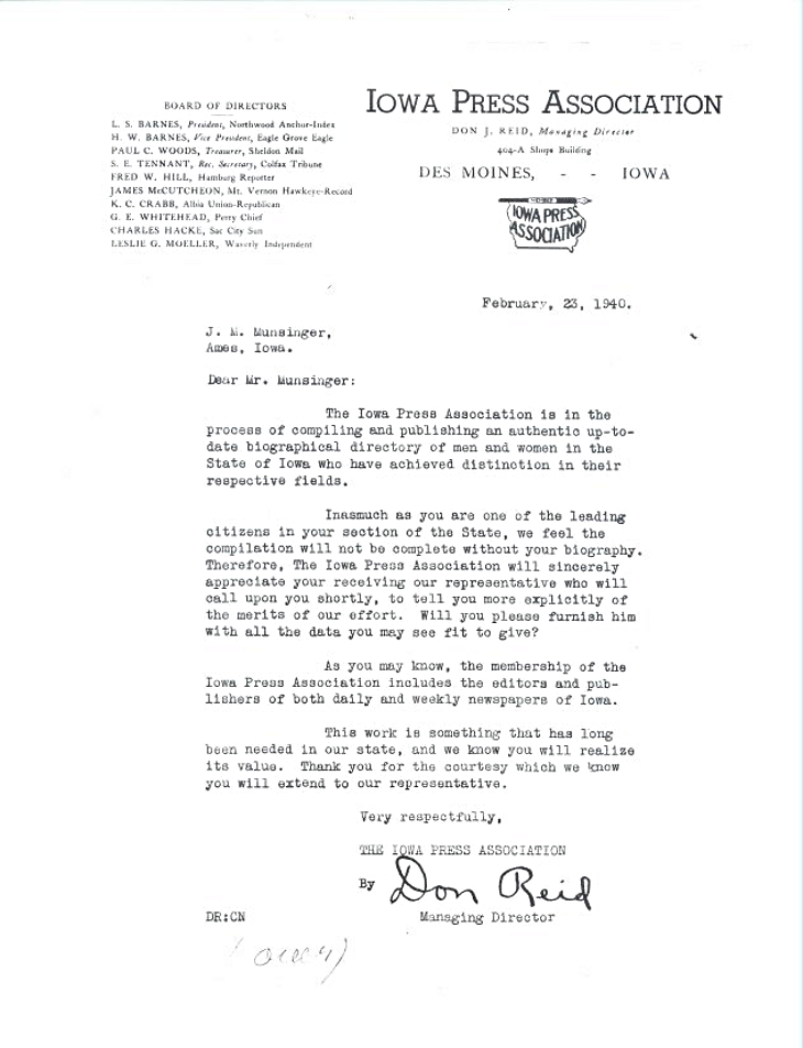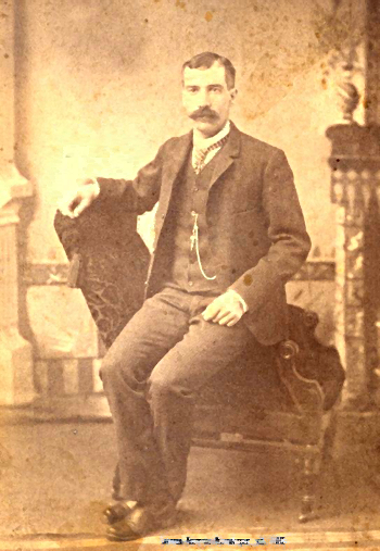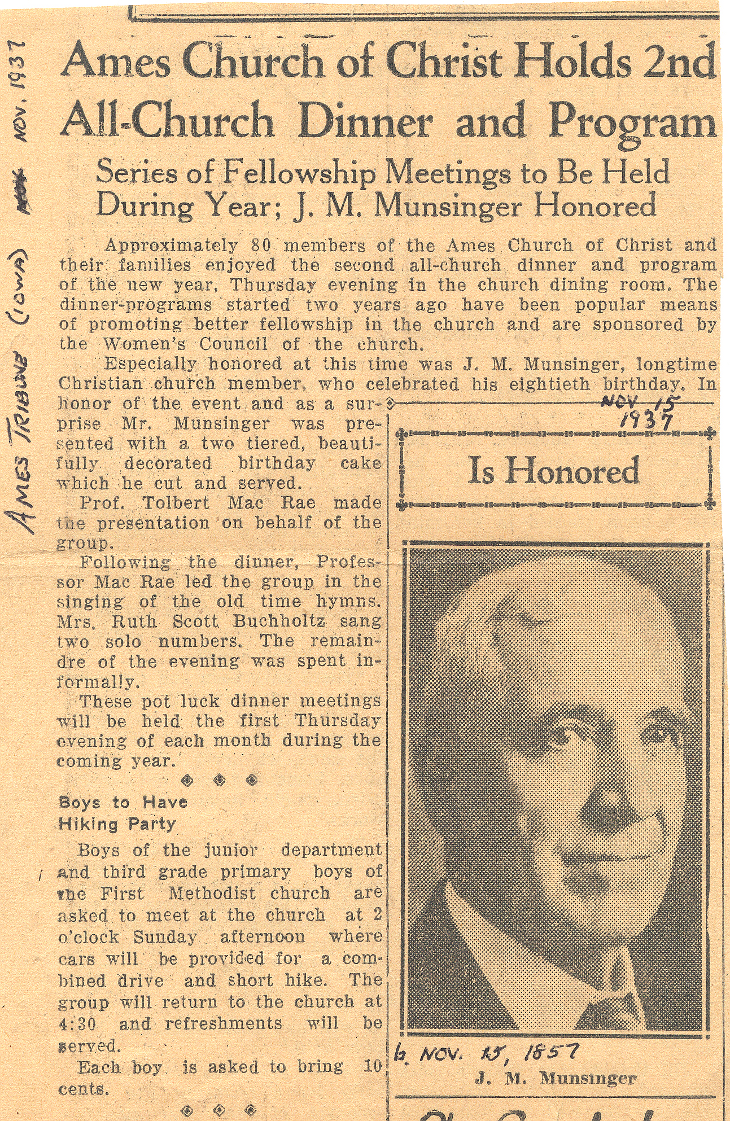 Portrait from about 1880. This photo came down the family to Nellie (Munsinger) Spencer, great-granddaughter of James' older half-brother George Munsinger. Nellie did some of the early Munsinger family genealogy research, and when we met at a Kansas reunion she gave me this old photo of my great-grandfather.