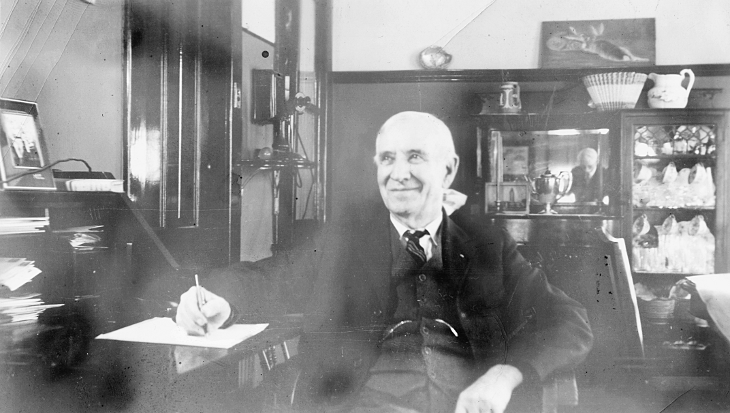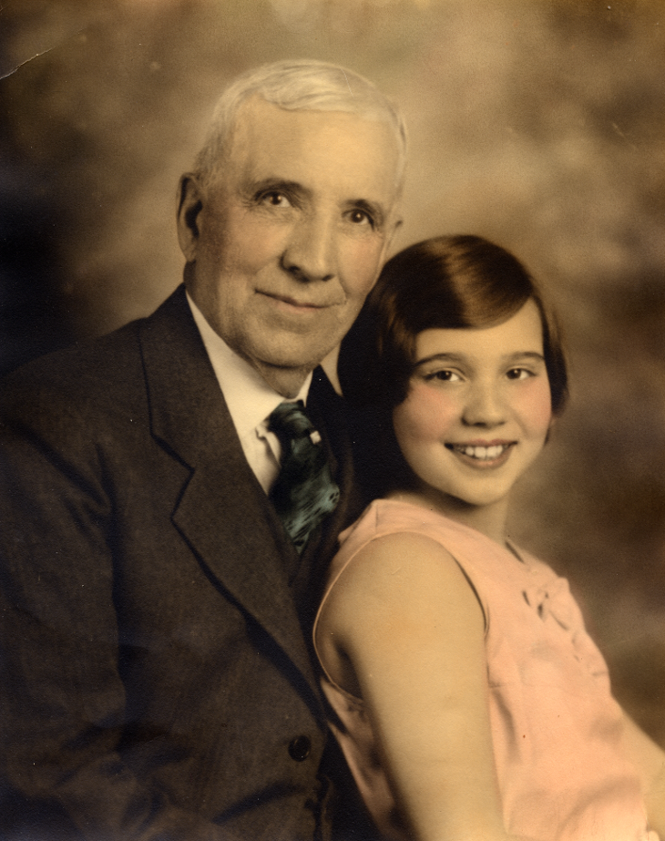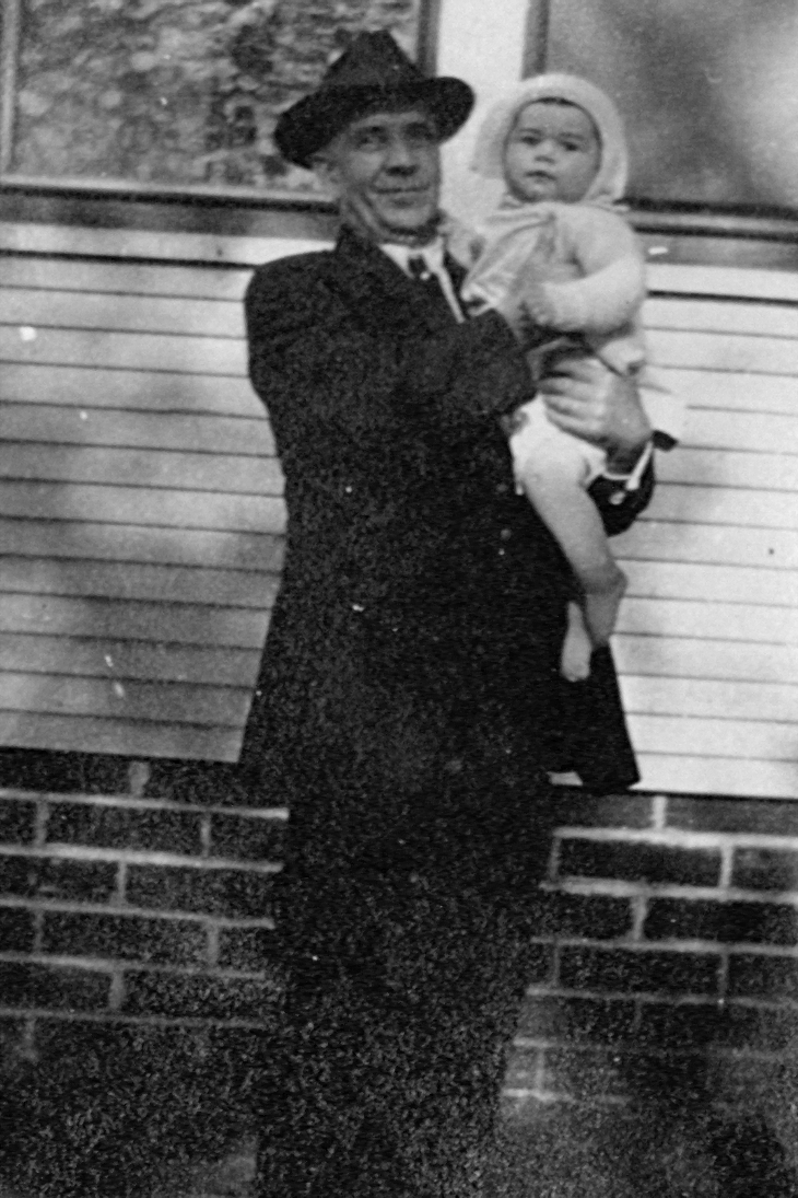 Portrait with granddaughter Jane, daughter of his son Lawrence who died in a gas asphyxiation accident in 1926. This photo was about 1934.