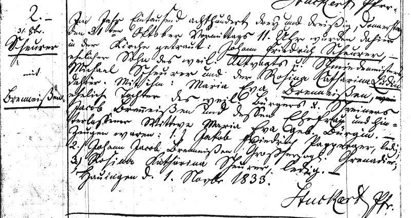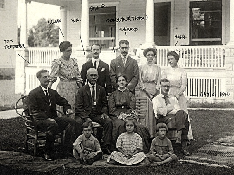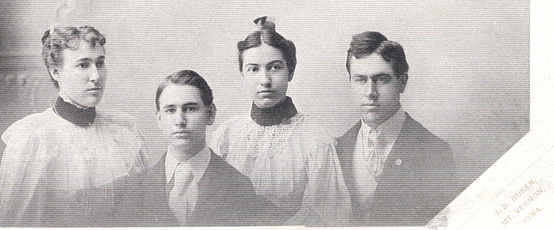 The immigrant Johann Friedrich Scheurer and his wife Maria Eva Brenneisen were from Hauingen, just northeast of Lörrach in the Schwarzwald (Black Forest), a little north of Basel in Switzerland. It was only recently (2010) that I located the correct village, and found the church christening record and marriage record shown below. The family immigrated in 1843, first to western New York state, then to Wisconsin and ultimately to Iowa where my pure German great-grandmother Mabel Shirer met and married my pure Scots-Irish great-grandfather Jay Boyd at Mt. Vernon. Her father, William Shirer, had moved the family from Benton County, Iowa, to Mt. Vernon to enable the children to attend Cornell College there. Mabel's older brother Seward Shirer was the father of the notable American author and international radio correspondent William L. Shirer, most well known for his book The Rise and Fall of the Third Reich. Some Scheurer descendants adopted "Shirer" (which is close to the sound when Germans pronounce the surname), while others kept the German spelling. Of William's seven siblings, only Michael Scheurer (1838-1910) had children -- from two marriages, he had 12 children, born in Iowa and Kansas.