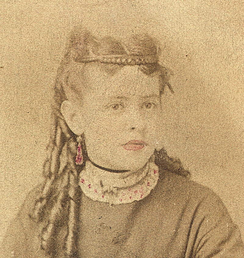 Some seven years after the 1848 death of James W. Kirkendall Sr., his widow Delilah had a daughter named Alice. In the 1860 census, Kirkersville, she is listed as "Alice" in the Delilah Kirkendall household. In the old Bible, her photo is annotated "Allie Kirkendall Paget". My mother's recollection, handed down from her mother, is "Allie Pagett". In the 1850 census, on the same page as the Delilah Kirkendall family is found Eli Pagett, age 32 (one year older than Delilah), born Maryland, occupation carpenter, and living in the Kirkersville hotel. Unfortunately the 1870 census of Licking County, Ohio does not show a single Kirkendall family, even though we know the James W. Kirkendall Jr. family was living there, either at Kirkersville or on Deeds Road at the time, and Delilah and the younger children were still living at Kirkersville. Apparently the census enumerator was not so diligent that year. I cannot find any further information about Alice -- no marriage records or other civil records in Licking County, and no census listings. Delilah is found in 1880 living in Red Willow Co., Nebraska, but there is no sign of Allie. The "Croquet at the Kirkendalls" photo appears to include Alice as an adult, about 1890 - 1891, at her half-brother James W. Kirkendall's house, on Deeds Road. There is also one more gentleman in that photo than can be accounted for with James Kirkendall and his five sons. The fate of Alice Kirkendall/Pagett is unknown.