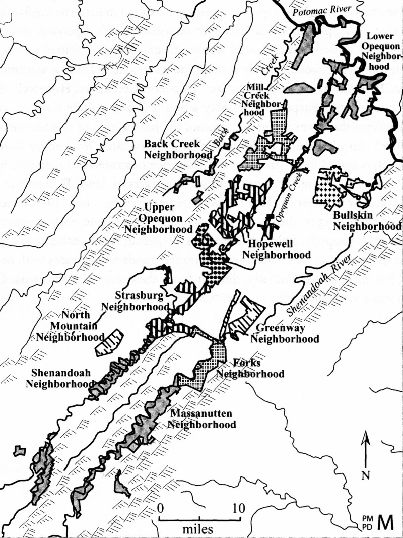 "Hofstra, Warren R., The Planting of New Virginia: Settlement and Landscape in the Shenandoah Valley. Figures 3.6, 3.7, 4.1, pp. 137, 141, 147. ©2004 The Johns Hopkins University Press. Reprinted with permission of The Johns Hopkins University Press."